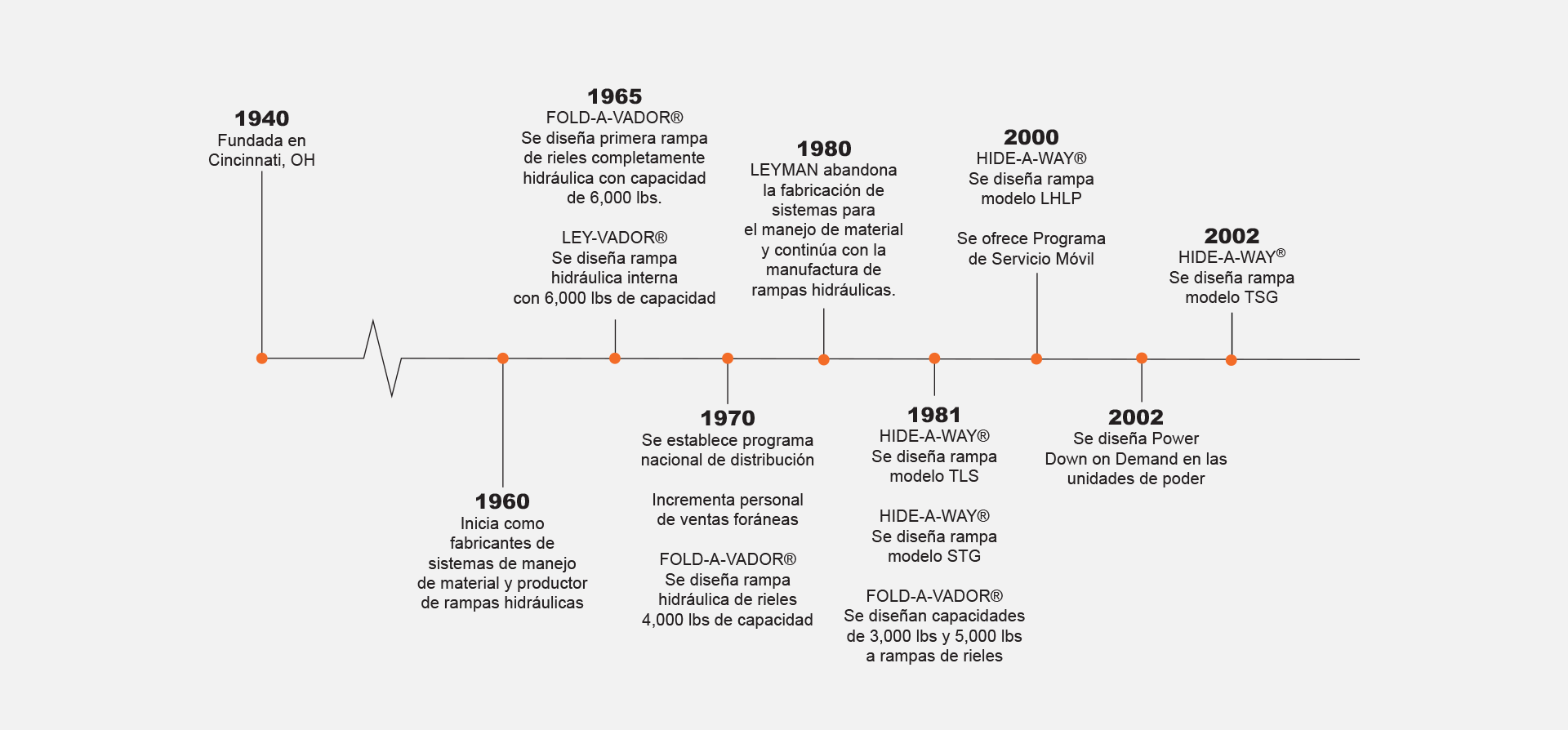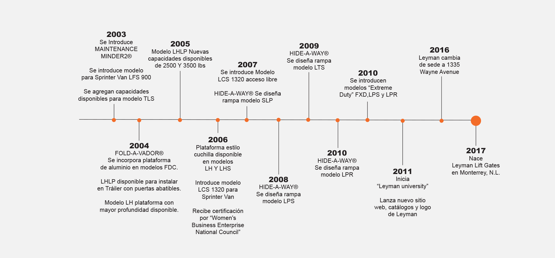 LEYMAN ofrece 12 modelos diferentes de plataformas hidráulicas a través de 900 distribuidores en Norte América, Centro y Sur América. LEYMAN también es el proveedor lider de los fabricantes de trailes y camiones a nivel nacional y a su vez cuenta con centros de distribuición en Ohio, New Jersey & Monterrey, México.